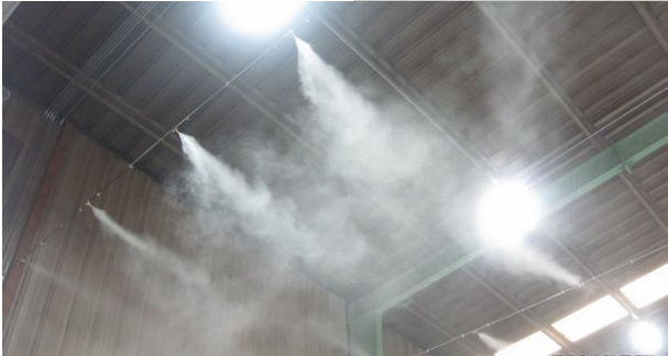 4.噴霧降溫:噴霧降溫的原理也是和水簾一樣的,都是通過水蒸發(fā)吸熱達(dá)到降溫的,不同的,噴霧降溫是直接在廠房?jī)?nèi)安裝管線噴嘴,通過主機(jī)加壓把水運(yùn)輸?shù)礁髦Ч苈?,再通過0.1毫米孔徑的高壓霧化噴嘴噴出成霧,霧蒸發(fā)降溫。噴霧降溫優(yōu)點(diǎn):前期成本低,后期成本也很低(一般1000平米的廠房1.5KW的主機(jī)就可以了),降溫幅度大。缺點(diǎn)就是需要通風(fēng)條件好的廠房,密封廠房不適用。